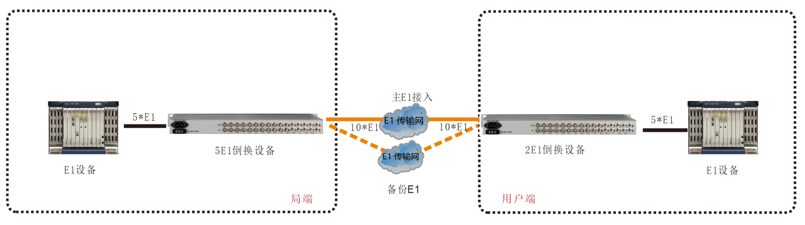 设备内带继电器,设备掉电,支持业务与主E1直通功能;